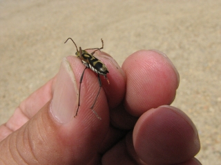 【左】クジャクが羽をちょうどひろげていた 【中】タケトラカミキリ 【右】ウバタマムシ