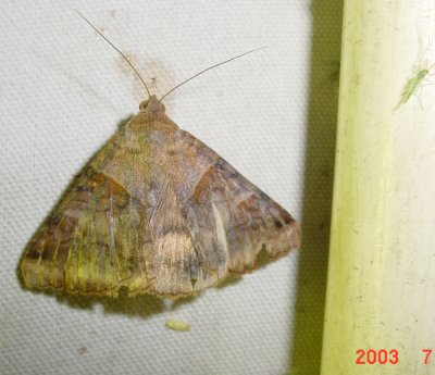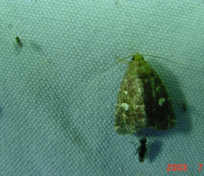 【左】フタオビコヤガ。イネの葉が食べるので嫌われます。山沿いの水田に多くみられます。