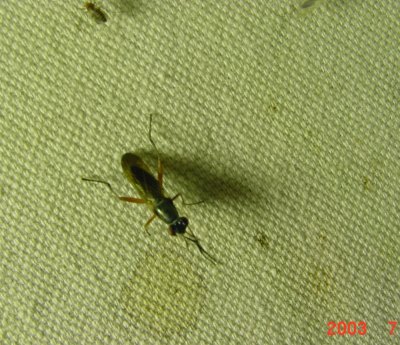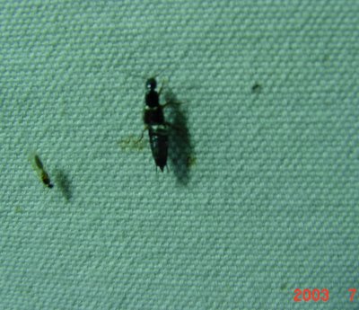 【左】ハネカクシS・P。ハネカクシのほとんどは上羽根が短く、後羽根は畳んで、その下に収められています。毒を持ち刺しますので注意してください。
