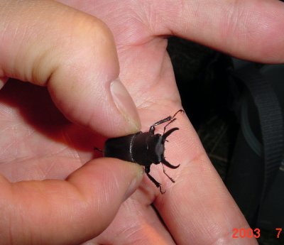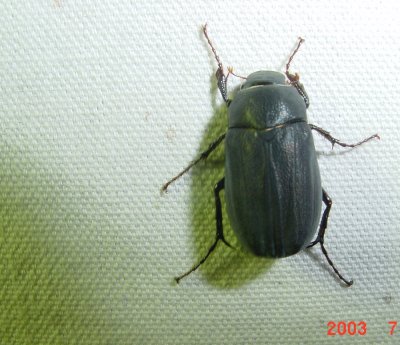 【右】コクロコガネ。幼虫は草や木の根を食べます。成虫はクヌギなど広葉樹の葉を食べます。