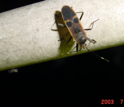 【右】オオホシカメムシ。食草はアカメガシワで幼虫も成虫も良く集まっています。