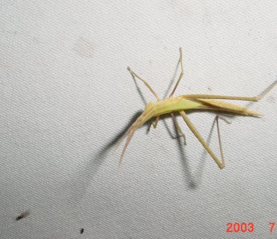 【左】ショウリョウバッタ幼虫。おなじみのキチキチバッタ。幼虫は羽が伸びていません。