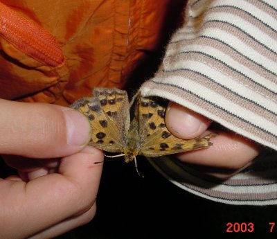 【左】キタテハ。食草はカナムグラ。成虫越冬をします。