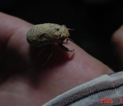 【左】ニイニイゼミ。地面を歩いていました。抜け殻に泥がついているのが特徴です。