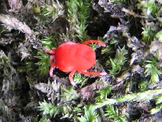 【左】美しいダニがいました。植物を分解してくれるアカケダニでしょうか。