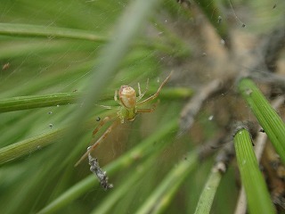 松葉の付け根あたりをすみかとしていたクモ。ハナグモみたいです。