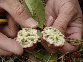 【左】イスノキについていた虫こぶ。この状態で余り見たことがないがイスノフシアブラムシでしょうか。