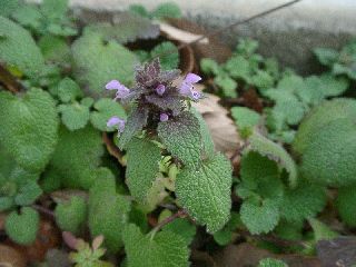【右】こんな季節にヒメオドリコソウの花が・・・