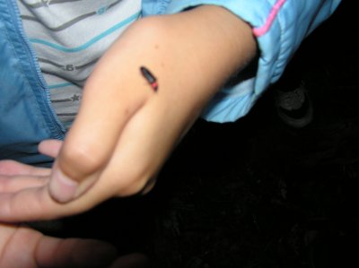 【左】たくさんのヒメボタルが発生しています。見えますか?私には見えます。デジカメでは無理でした。しかし、参加した人の目の中には未だ残像が残っていることでしょう。