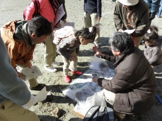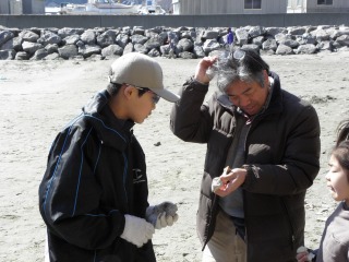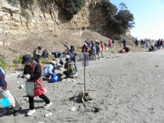 昨年からこの海岸で行なっていますが、昨年の反省から聖崎公園を集合場所としました。遠くは岡崎からみえた方もありましたし、集合時間の30分近くも前から来られていたやる気満々の方もみえたりして、多くの方に参加していただけました。木下洋一、日比野両先生の丁寧なご指導のもと、参加者のみなさんが満足できる収穫を得られたものと思います。