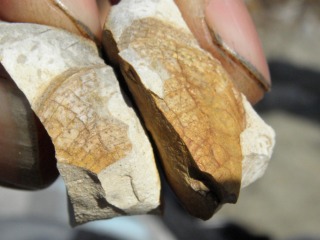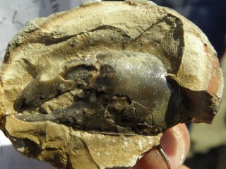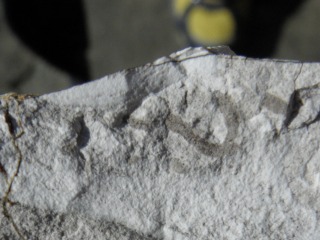 なお、今年は魚の鱗の化石が多く見つかっていましたが、黙々と石を割っていた桑原指導員の執念が実り、魚本体の化石(ハダカイワシの一部?)を見つけたことが今回の観察会の一番の話題でした。(永田・記)