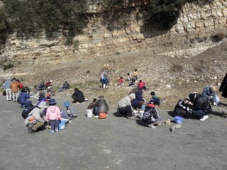 【左】思い思いの場所で化石探しに夢中  【右】タマガイ