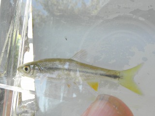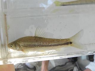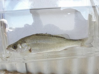 スズキ(体長15cm位)、オイカワ、ヌマムツ、タモロコ、タイリクバラタナゴ、ヨシノボリ