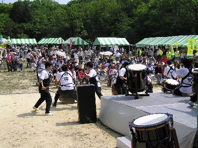 【左】「町民の森」の広場で和太鼓の演奏をしていました。