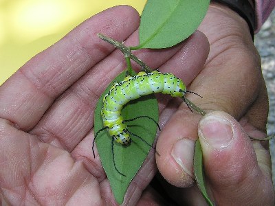【右】イボタやネズミモチを餌にしているイボタガです。虫さんは偏食で自然が豊かになり植物の種類が増えると虫の種類も増えます。