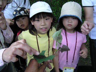 【左】かわいい虫がいたよ。触ってごらん。