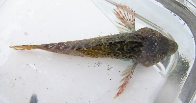 【左】ハオコゼです。背びれと鰓ブタに毒のあるトゲがあります。注意しましょう。