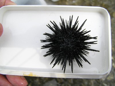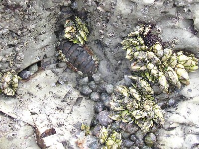 【左】カメノテ、ヒザラガイ、イボニシが岩についています。