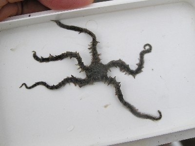 【右】変わった生き物を採集しました。よく見るとルアーでした。鋭い針が付いて大変危険なものです。