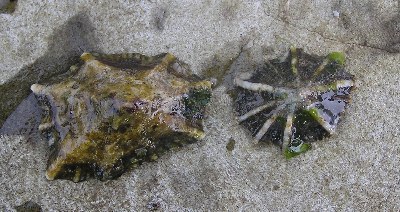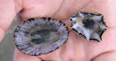 【右】ヒザラガイの貝殻です。8枚がばらばらになる前で、こんなのを見るのは珍しいです。