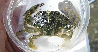 【左】イシガニです。ワタリガニの仲間で強いハサミを持っています。