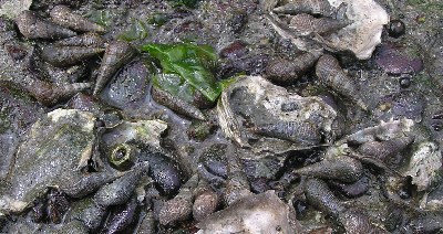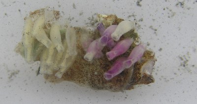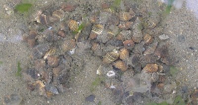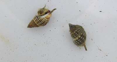 【右】砂泥に近い部分にたくさんヘナタリガイがついていました。
