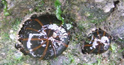 【右】潮上帯にイワフジツボがたくさん付いていました。