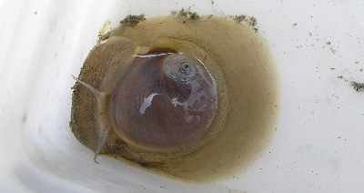 【左】イボニシの殻を利用しているホンヤドカリ。