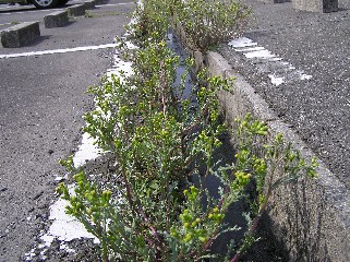 【右】アスファルトの間からノボロギクがたくさん生えていました。