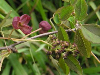 【左】ゴヨウアケビの花です。左が雌花、右が雄花です。
