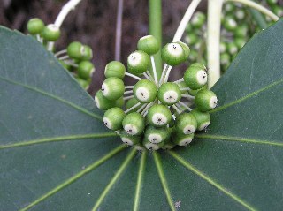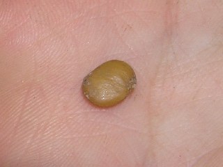 【右】鳥の糞の中にたくさん入っているハゼの種子。