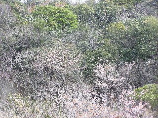 【中】ヤマザクラやヤブツバキの咲く山手の散策路を法山寺に向かいました。
