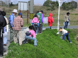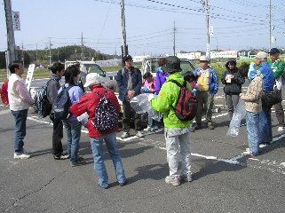 【左】強風の中、名鉄野間駅に集まり、本日の見どころをお話しています。