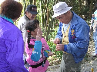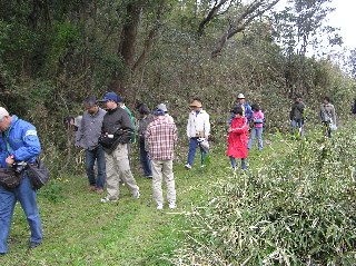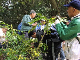 【左】ヒイラギナンテンのおしべに触れると動きます。皆さん試しています。