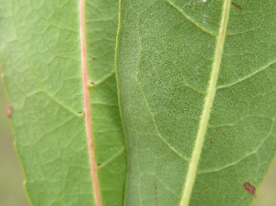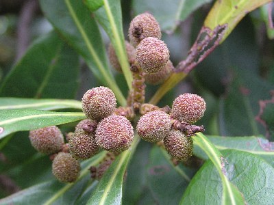 【右】ヤマモモの葉はどちらでしょう。左はホルトノキです。