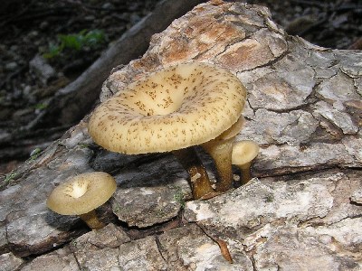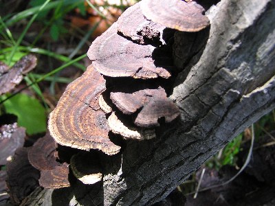 【右】チャカイガラタケです。木を腐らせて土に戻します。