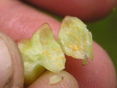 【右】イスノキの虫瘤(むしこぶ)の中にいたアブラムシです。