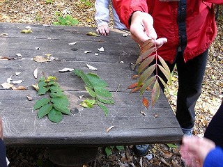 【左】コナラを見ながら  【右】ハゼノキの観察