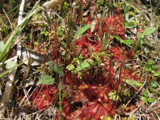 【左】子どもはこんちゅうが大好き 【右】コモウセンゴケが群落状態の土手もありました