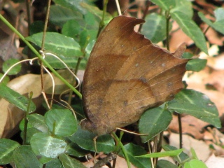 【左】クロコノマチョウ。帰宅後、一生懸命、図鑑で調べました。小学館のNEO「昆虫」図鑑で“ウスイロコノマチョウ”が似ていましたが、分布が南西諸島とありました。ネットで詳しく調べたところ“クロコノマチョウ”がベターかなと考えました。まったく違うかも知れません…(^_^;)