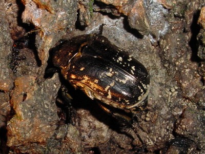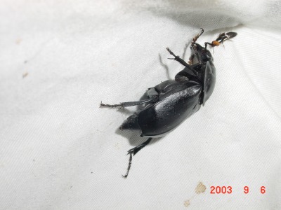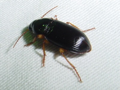 【右】ガムシも灯火採集の常連です。ここに来たのは水田などでよく見られるコガムシかヒメガムシ見たいです。