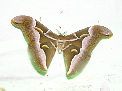 【右】シンジュサン。戦時中繊維をとるために飼育しました。