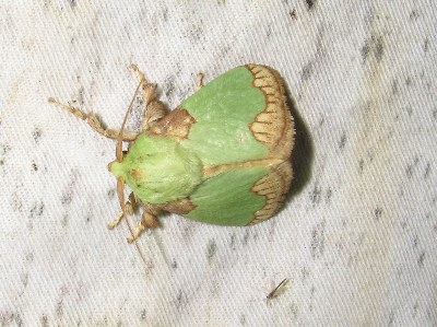 【左】アオイラガ。幼虫はオコゼといって毒針を持っています。成虫は大丈夫です。