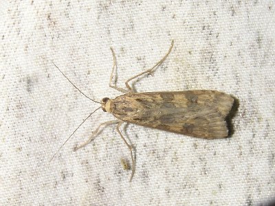 【左】ワモンノメイガで、ホウレンソウ、シュンギク、キャベツ、コマツナなどの野菜の茎葉を食害する雑食性の野菜の大害虫。
