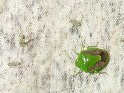 【左】ヒメチャバネアオカメムシ。キク科の植物を食べます。