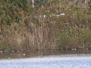 【左】北側の岸にハシビロガモ、キンクロハジロ、ホシハジロ、オオバンが見られました。