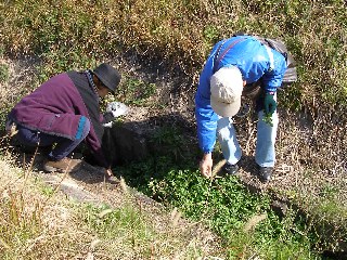 【右】湧き水がある水路にクレソンが繁茂していました。他にオランダカラシ、ミズガラシ、ウォーターレタス、タイワンゼリなどともいわれます。