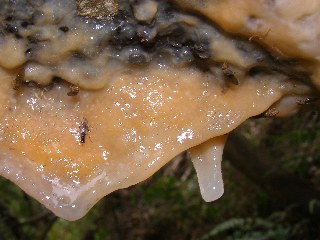 【中】オオバヤシャブシの樹液が発酵したものにハエの仲間が来ていました。