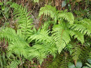 【左】美しい新芽のクマワラビ(左)とイノデ(右)。