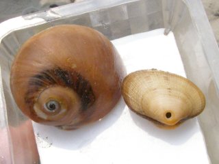 【中】ツメタガイとツメタガイが食事するときにアサリに空けた穴